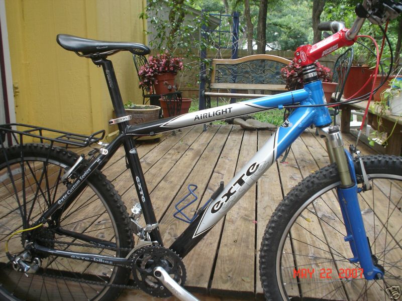 vielleicht könnt ihr die augen offen halten, ob irgendwer auf nem blau-silbernen bike mit xt-ausstattung, magura hs 11 und (lacht mich ruhig aus) ner suntour xc gabel rumfährt! auf dem rahmen steht "exte", dürfte nicht so häufig sein!