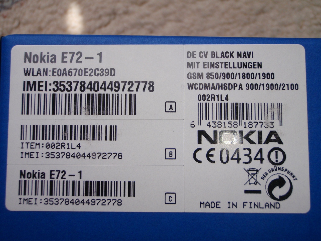 Es handelt sich um ein Nokia E72 in schwarz, und zwar in der Navi-Edition, d.h. mit Autohalterung.