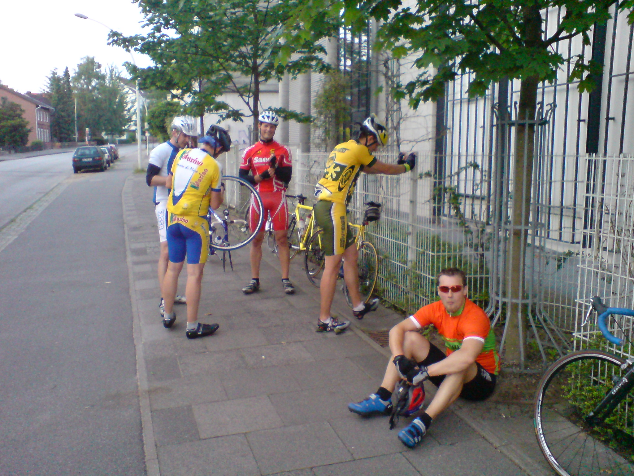 Kurz vor Kiel hatte Christoph noch einen Platten. Aber konnte ich wieder die typischen Tourenbilder machen.