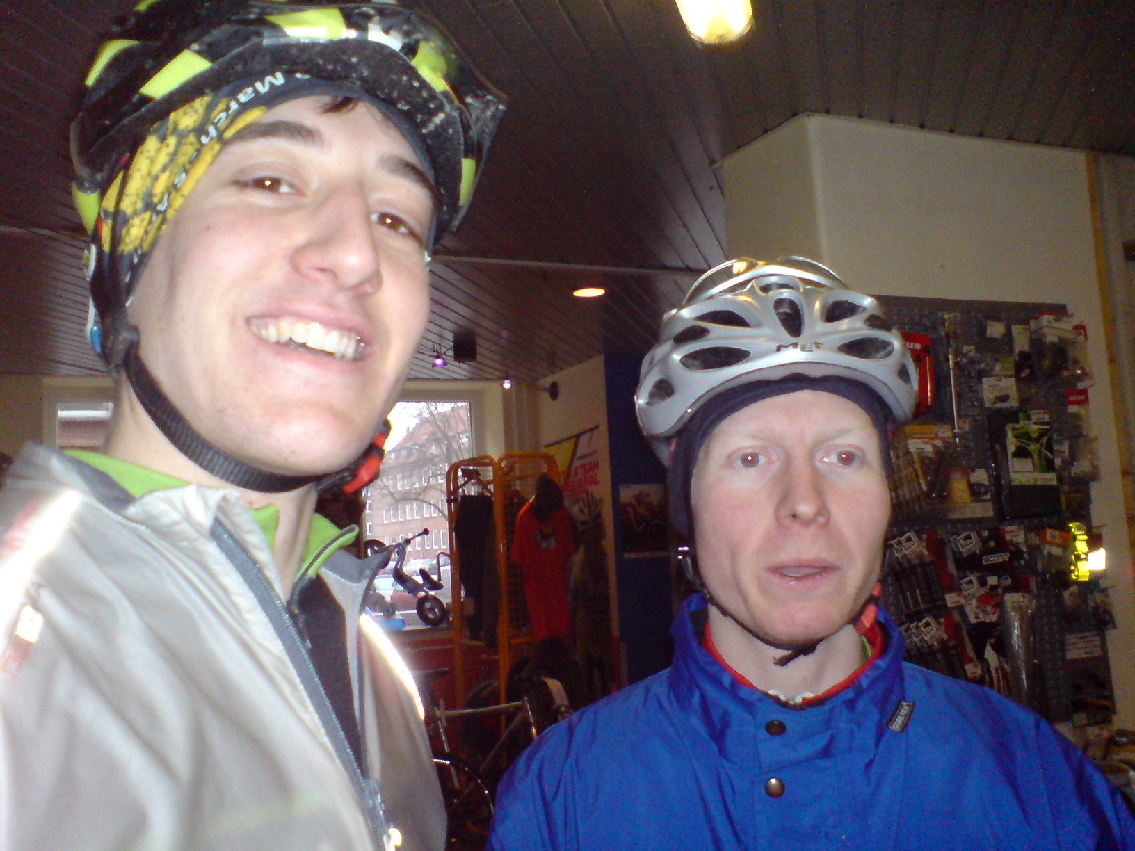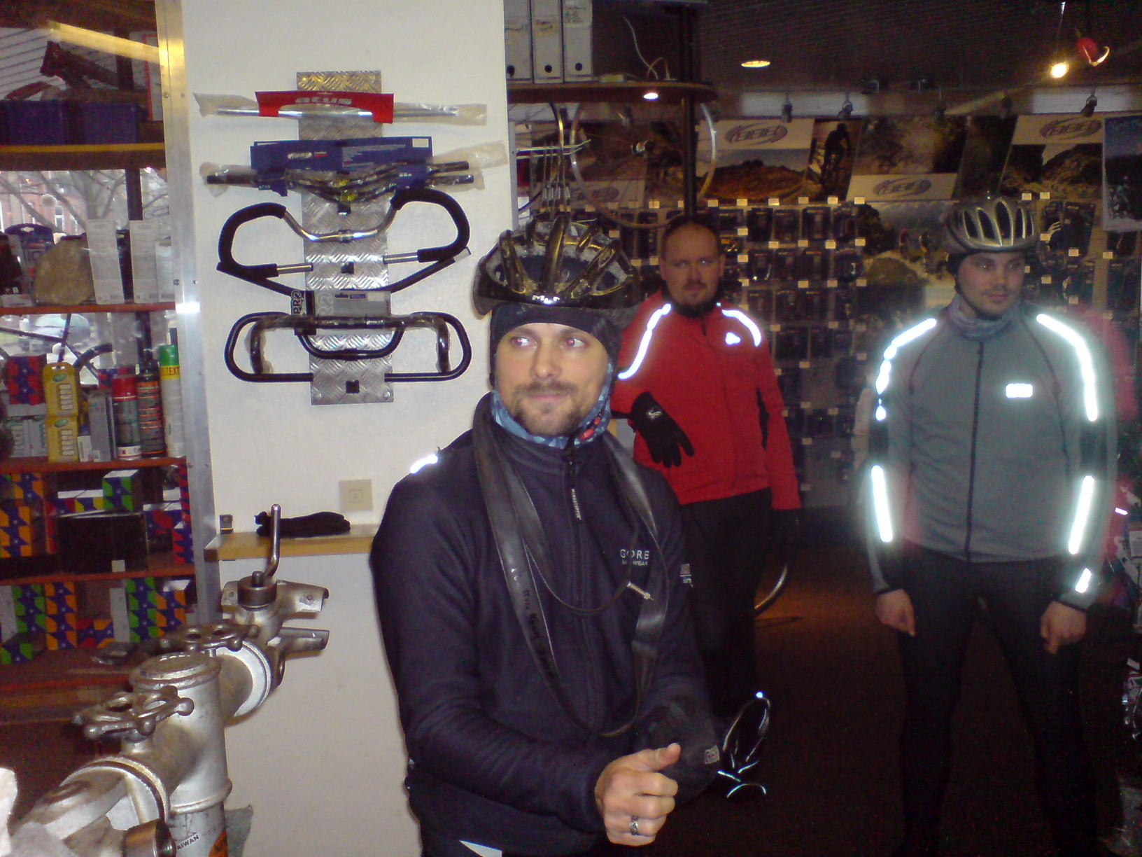 Als wir schließlich alle gut durchgefroren waren, ging es noch zu bike-orange. Carsten hat dort seinen Siegersekt und ein wenig Fettgebackenes ausgegeben. Dafür bekam er neben reichlich Dank auch die erstmalig verliehene Siegerschärpe der "Plattenkönig 2008 Wertung"