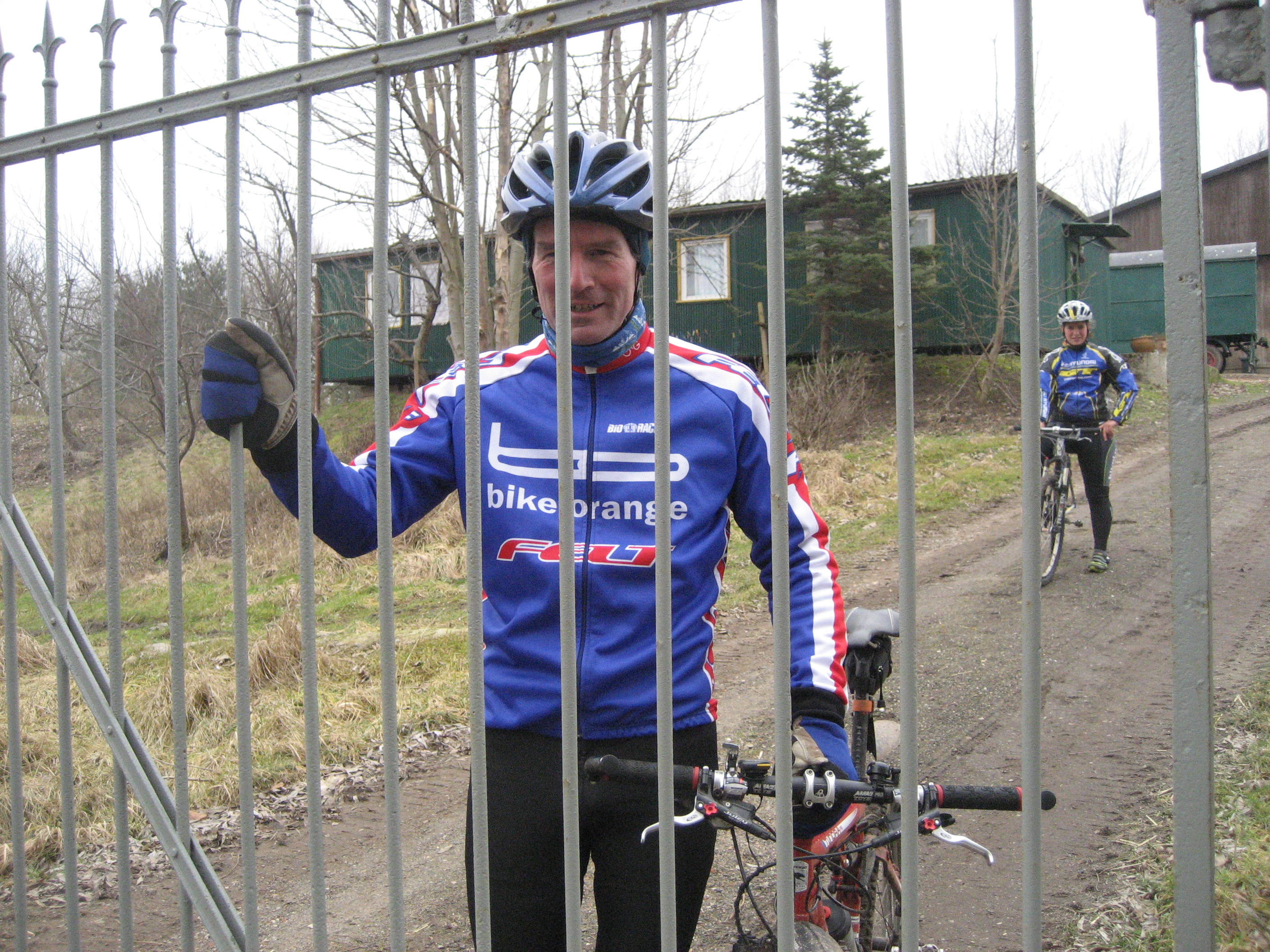 Am Vortag hatte ich mir an dem Pferdehof, wo wir uns jetzt befanden, einen schönen Ausweich-Schummelpfad gesucht um nicht durch gute 10m tiefsten Pferdematsch waten zu müssen. Ich kündigte es an, dass wir über den Pferdhof und einen Zaun müssen. Wir waren auch fast durch, da merkte ich wie Anke und Sebastian von dem Bauern bequatscht wurden und nicht mit uns mitkamen. Na toll, dachte ich, jetzt gibts Ärger. Ich mischte mich ins Gespräch ein um ihm zu versichern dass wir nur schnell über den Zaun wollen und sofort wieder weg sind. Irgendwie heizte sich das Gespräch immer mehr auf weil ich dachte, dass er uns nicht durchlassen will. Letztlich stellte sich heraus, dass er es eigentlich nur gut meinte und uns helfen wollte. :oops: Freundlicherweise machte er uns sogar eine Scheune auf durch die wir dann matschfrei unseren Weg fortsetzen konnten. Hilfsbereitschaft kennt man ja garnicht, man kriegt ja sonst immer nur Ärger wenn man wo durch fährt. :roll:
