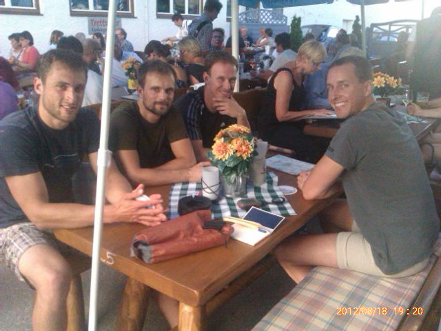 Da die Reservierung aus irgendwelchen Gründen nicht eingetragen war, gabs zum Abendbrot eine Bratwurst vom Grill mit Kartoffelsalat. Nicht das Mehrgängemenü, womit die anderen Gäste noch beschäftigt waren. Naja, aber es machte einigermaßen satt. Viel wichtiger war sowieso, dass es noch freie Betten gab. Und da hatten wir wieder Glück, schon wieder das Matratzenlager ganz für uns alleine. Die Hüttenbetreiber verliessen gegen 10 die Hütte und verbrachten die Nacht im Ort. Vorher haben wir noch schnell eine Getränkebestellung für den Abend abgegeben und alles bezahlt. Dann waren wir alleine...