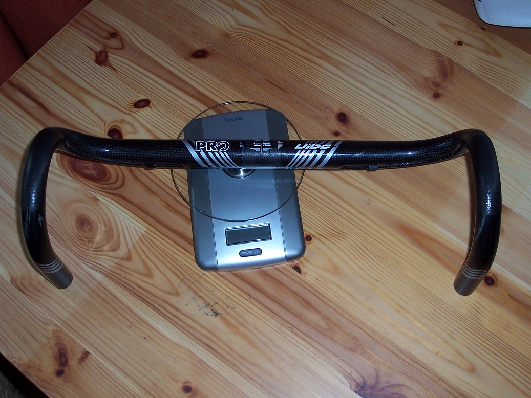 Geworden ist es ein "Vibe Full Carbon OS Round!" von PRO. Ein unglaublich kurzer Name für einen Lenker oder? Das Ding soll 215g auf die Waage bringen, schafft aber auch locker 233g. Aber das Gewicht ist ja egal bei dem Preis!