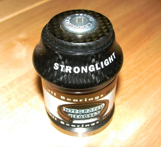 Heute gibt es den Steuersatz. Stronglight 'Light In Ca'. Vollintegrierter Steuersatz mit Campagnolomaß. Dazu gibt es eine Carbonaheadkappe von Campa inkl. Aluminiumschraube. Insgesamt macht das dann 68g.