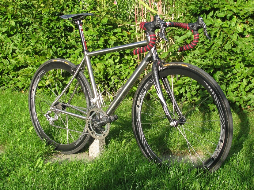 das Rad schaut gut aus. Gerade die Hochprofillaufräder finde ich super zu diesem Titanrahmen. Könnte mir noch schwarz/rote Schriftzüge von Kocmo gut vorstellen.