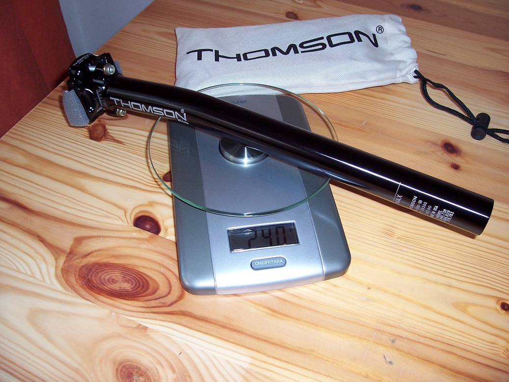 Ich finde die Stütze passt ganz gut zum Hinterbau. Außerdem sind sie und der Vorbau 1a verarbeitet. Ich hätte schon viel früher Thomsen fahren sollen. Auf das Topmodell "Masterpeace" habe ich bewust verzichtet. Das Ding sieht aus wie die "Elite", wiegt 40g weniger und sollte satte 60 EUR mehr kosten. Da hat bei mit die Vernunft gesiegt, denn super leicht wird Betty gewiss nicht. Ich hoffe aber auch sie wird nicht zu schwer.