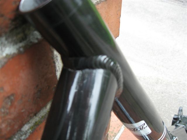 Da wollte ich vorhin zu einer hübschen kleinen Vatertags-Biketour aufbrechen, mein Blick schweift noch eben übers Oberrohr, und bleibt ungläubig an einem winzigen Löchlein an der Schweißnaht zum Sitzrohr hängen.