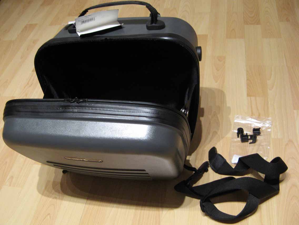 Mit dabei ist der Schultergurt, Silikonfett für den wasserdichten Zipper und Adapter für verschiedene Gepäckträger. Befestigung erfolgt über das ORTLIEB Aufhängesystem Quick-Lock2